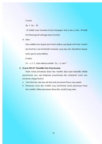 b. Persamaan linear dua variabel yang membentuk sistem persamaan linear