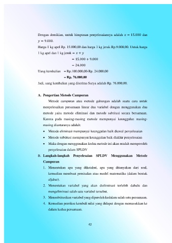 Harga 1 kg apel Rp. 15.000,00 dan harga 1 kg jeruk Rp.9.000,00. Untuk harga